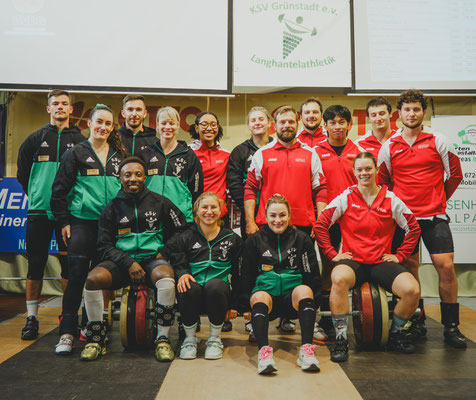 Im Rahmen der zweitägigen Veranstaltung trafen sich zudem die Junioren (U20) und U23-Nationalteams aus Deutschland und Frankreich zu einem Test-Wettbewerb. Einigen Athleten, darunter auch Padou Izere Shima, bot sich hier die letzte Möglichkeit, einen Startplatz für die ab Ende Juli in der rumänischen Hauptstadt Bukarest stattfindenden Europameisterschaften zu erkämpfen. Als Qualifikationsgewicht hätte der 22-jährige Student allerdings seinen bisherigen Zweikampfrekord von 251 kg um weitere acht Kilo übertreffen müssen – was er trotz spürbarer Anstrengung leider nicht schaffte. Lara Dancz hatte das EM-Ticket bereits in der Tasche und ging deshalb ohne größeren Druck an die Hantel. Mit einer neuen Zweikampf-Bestleistung von 216 kg bewies die amtierende Vizemeisterin eindrucksvoll, dass sie zweifellos auch in diesem Jahr auf dem Siegerpodest stehen könnte.