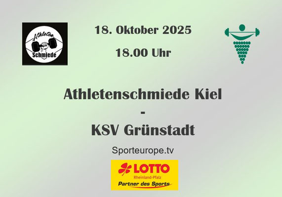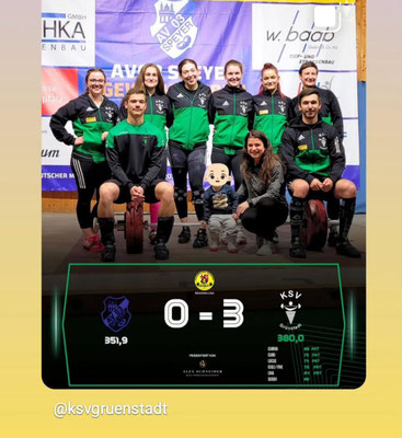 Im Bundesliga-Heimwettkampf gelang dem KSV Grünstadt beinahe eine faustdicke Überraschung. Mit dem zweitbesten Vereinsergebnis und einem hauchdünnen Abstand von lediglich 0,7 Punkten verloren die Gastgeber im äußerst spannenden Duell gegen den favorisierten KSV Durlach ganz knapp. Die Regionalliga-Mannschaft des KSV schaffte es, gegen den AV 03 Speyer II einen nach dem Reißen fast aussichtlosen Rückstand aufzuholen und drehte die Partie noch im Stoßen. Großartige Leistungen aller beteiligten Athletinnen und Athleten!